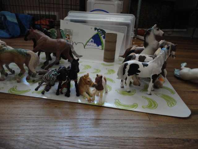 We went through about 8 (big) boxes of books and she got to keep 10 books from each box. We also kept all of the horse books. We have not counted, but I would guess that she still has over 100 books. I am thinking about making 12 boxes of books, and swapping out the book selection each month. We would probably keep out her absolute favorites all the time though.